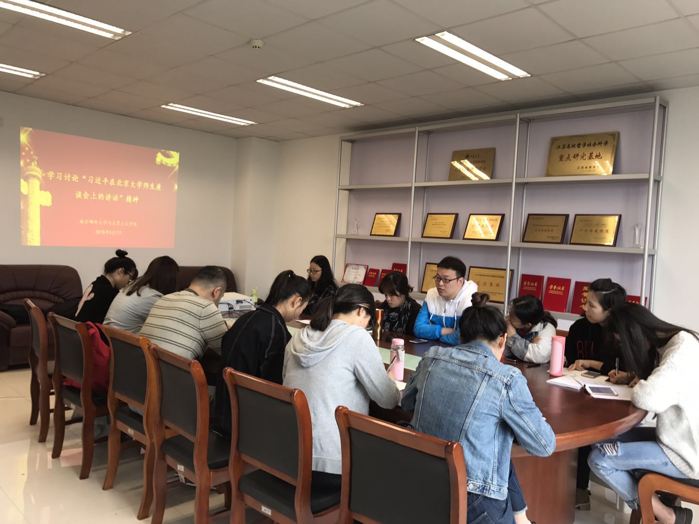 5月7日上午,必威西汉姆联组织全体研究生学习讨论今年五四前夕“习近平总书记在北京大学师生座谈会上的讲话”精神,全体研究生和辅导员王老师参加了讨论会,讨论会由团支部宣传委员徐诺诺同学主持。