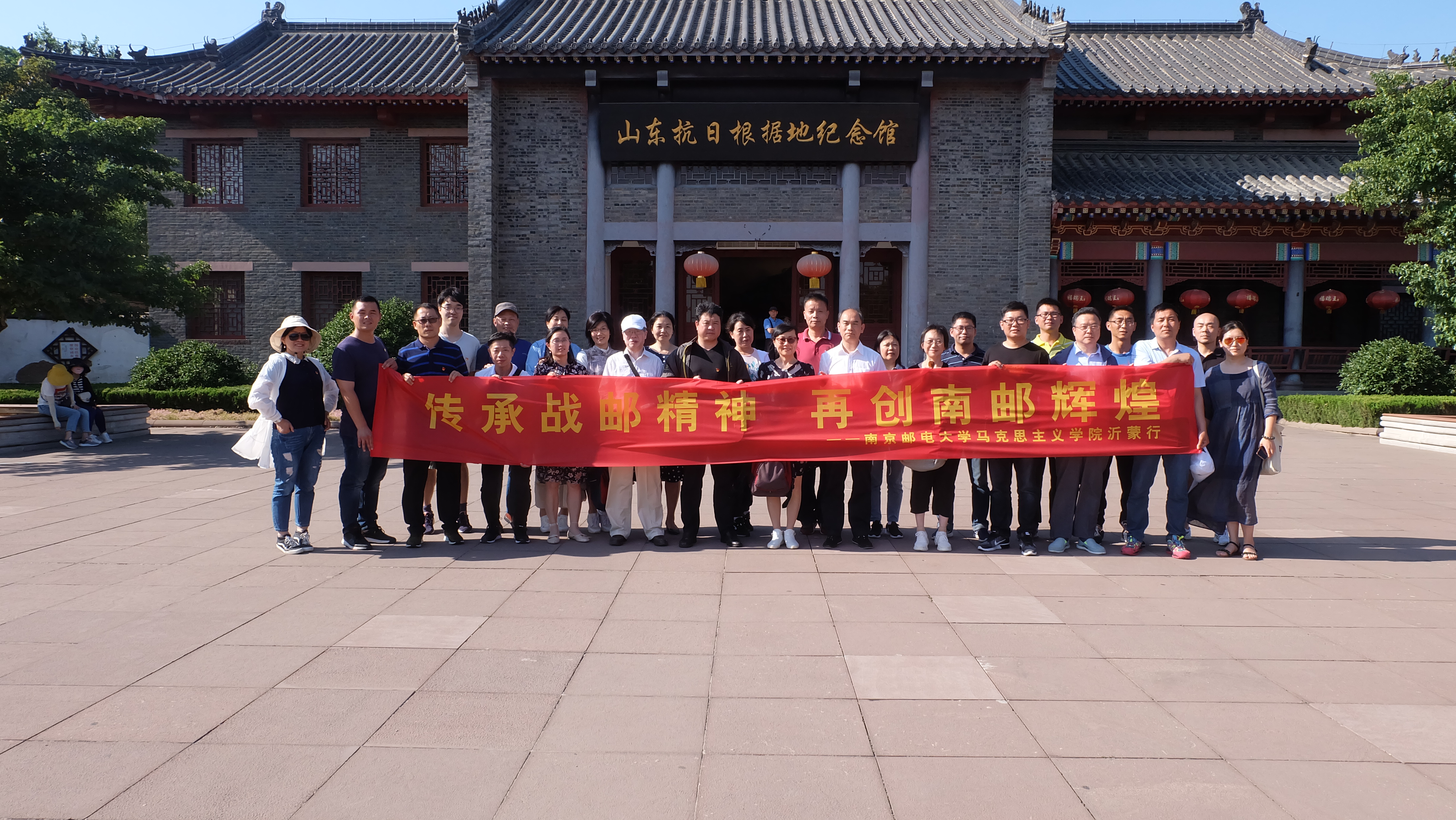 红色沂蒙忆峥嵘。6月22日下午,教师们首先参观了位于莒南县大店镇的山东省政府旧址、八路军115师司令部旧址以及山东抗日根据地纪念馆。在参观现场,大家佩戴党员徽章、面向党旗,重温入党誓词,再次庄严宣誓,立志为共产主义事业奋斗终身。通过参观和学习,深入了解了我们党领导广大军民在山东滨海抗日根据地开展的艰苦卓绝的革命活动,通过讲述一系列可歌可泣的革命英雄故事,体会血浓于水的军民之情,进一步激发了教师们的爱党爱国情怀。随后,驱车前往红色堡垒村——莒南县石泉湖村。该村在抗战时期是山东党政军领导中枢机关驻地,解放战争时期是战备物资供应的保障基地,在社会主义建设时期,也是艰苦奋斗、勤俭建国、治山治水、发展经济的光辉典型。作为革命战争年代乃至新中国成立后社会主义建设时期的一个缩影,通过了解村史、参观村貌,教师们对社会主义革命和建设有了更加深刻的理解。