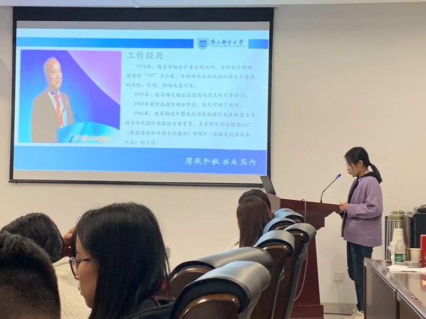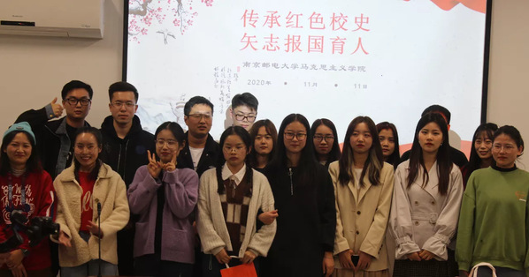 万文文、田宁、孙喆茜、涂曼四位同学的女生合唱《望柚子》博得现场的阵阵掌声。最后在贾天威同学趣味故事式的《南邮校史宣讲》中圆满结束。