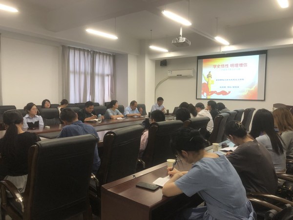 6月23日,马克思主义公司党总支书记沈召前研究员在文科楼330会议室为马院全体党员讲党课,主题为“学史悟性 明理增信——中国共产党为什么能”。