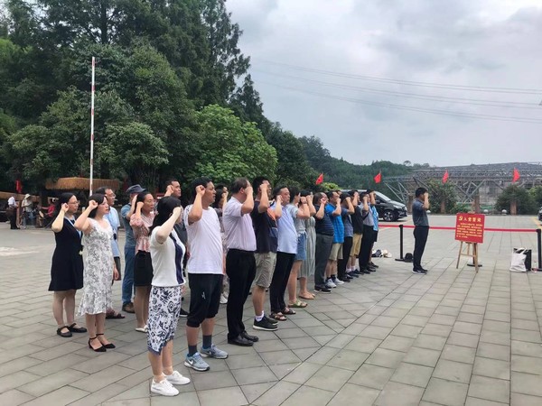 7月13日下午,教师们来到位于四川雅安的红军百丈关战役纪念馆参观学习。教师们徒步重走红军路,参观了红色标语碑林和红军百丈关战役纪念馆,教师们在纪念馆前缅怀革命先烈,面对党旗,大家举起右拳,重温入党誓词,以坚定有力的宣誓,表达不忘初心、砥砺前行的信念和决心。