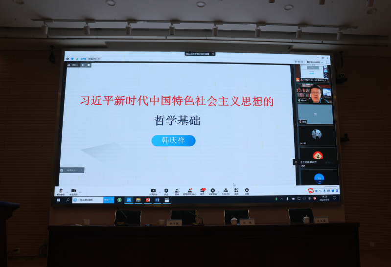 韩庆祥教授以“习近平新时代中国特色社会主义思想的哲学基础”为题作论坛首场学术报告。报告围绕“习近平治国理政根本上面对的是‘哲学问题’”“解决哲学意义上的问题形成新的‘哲学观’”“系统为基战略辩证法创新发展了马克思主义具有总体性的‘辩证哲学’”“习近平新时代中国特色社会主义思想蕴含新的‘哲学思维’”“习近平新时代中国特色社会主义思想蕴含治国理政的‘哲学智慧’”“习近平新时代中国特色社会主义思想鲜明彰显‘哲学理念’”等六大主要部分,对习近平新时代中国特色社会主义思想的哲学基础展开深入论述和系统阐释。韩教授的报告理论深度强、学术价值高,是一场“学术大餐”和“思想盛宴”,对全校师生深入学习和理解习近平新时代中国特色社会主义思想具有重要的指导作用。