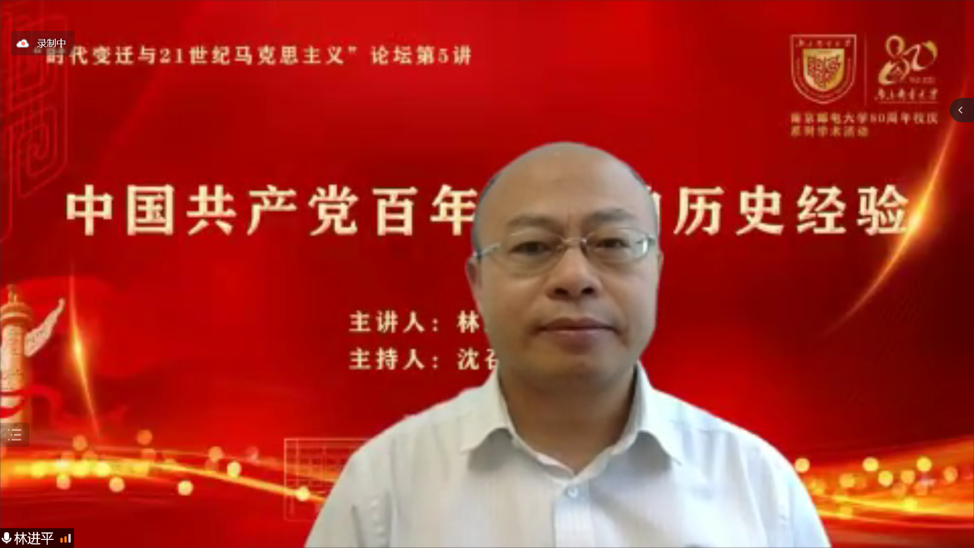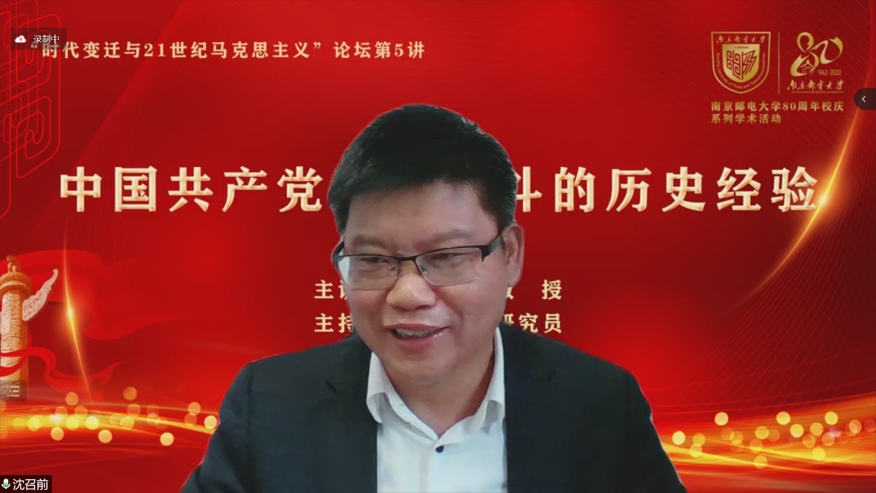 5月19日下午,中山大学必威西汉姆联经理林进平教授应邀做客“时代变迁与21世纪马克思主义”论坛,作题为“中国共产党百年奋斗的历史经验”的在线学术报告。这是论坛主办的第5场学术报告。公司必威西汉姆联相关负责人、校内外专家学者和师生代表300余人在线听取了报告。报告由公司马克思主义公司党委书记沈召前研究员主持。