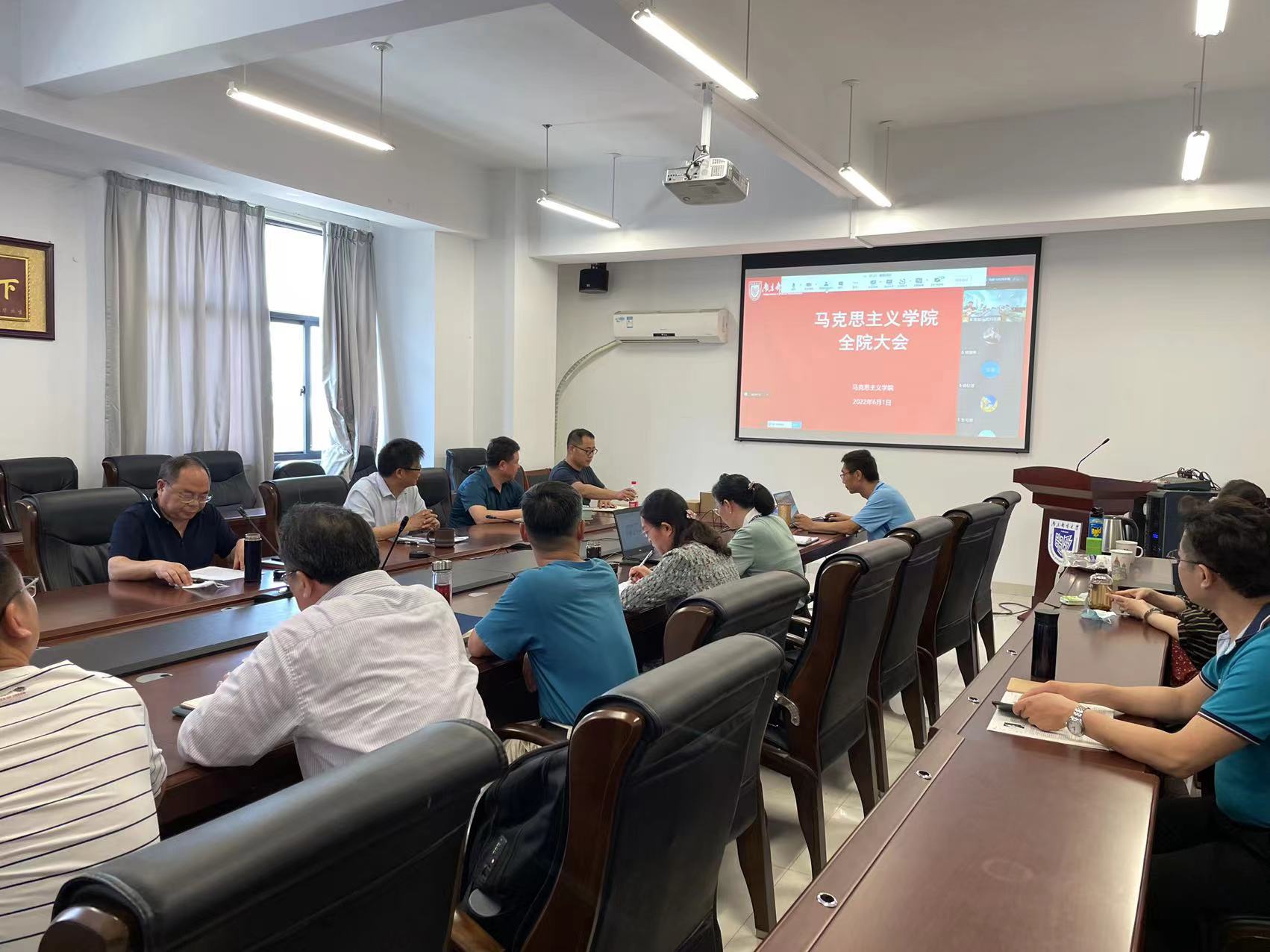 6月1日下午,公司在文科楼330会议室召开全院大会。大会传达近期公司意识形态例会和基层党委书记会会议精神,部署思政课教学规范、疫情防控、意识形态等相关工作。会议以线上线下相结合方式进行。会议由公司党委书记沈召前主持,公司领导班子成员,办公室行政人员,各教研室主任、副主任,各支部书记线下参会,其余教职工线上参会。