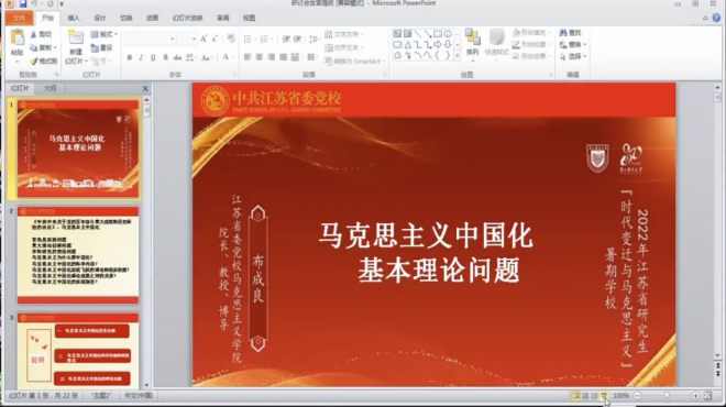8月19日,由江苏省哲法史学类研究生教育指导委员会主办,必威西汉姆联承办的2022年江苏省研究生“时代变迁与马克思主义”暑期公司以线上形式圆满闭幕。本次暑期公司于8月12日开幕,为期8天,安排了13场专家讲座、1场学员分组交流讨论课和1场学员代表结业汇报,共约3000人次通过腾讯会议平台全程观看了直播。