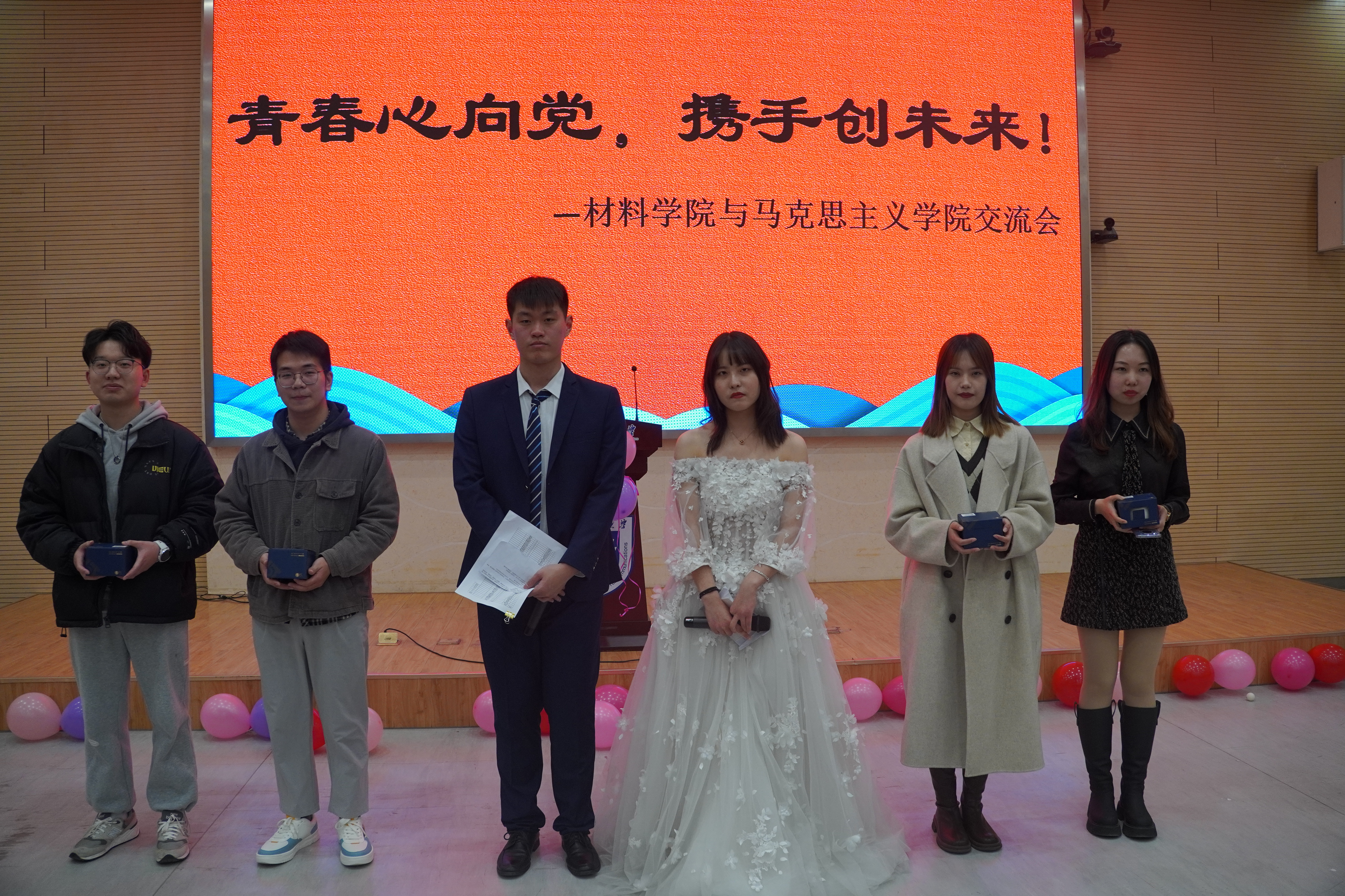 为开阔研究生同学的视野,激发研究生同学的科研热情,加强跨学科交流沟通,展现当代研究生良好的精神面貌,必威西汉姆联与材料公司于2021年12月30日晚联合举办了“青春心向党,携手创未来”交流会活动。活动分为三个环节,分别为表演环节,抽奖环节和游戏环节。