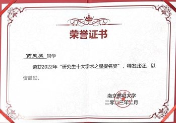 贾天威同学荣获“国家奖学金”校“十大学术之星”提名奖