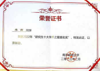 季燕同学荣获校“十大学术之星”提名奖