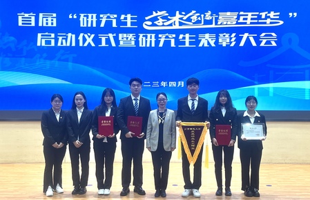 公司研究生党支部荣获校“研究生样板党支部”、研究生工作室荣获校首届“最美研究生工作室”。贾威同学荣获“国家奖学金”和校2022年研究生“十大学术之星”提名奖,季燕同学荣获校2022年研究生“十大学术之星”提名奖,王莹同学荣获校首届研究生“德育之星”提名奖,研究生党支部书记黄洁老师、党员代表和获奖员工参加了此次研究生表彰大会