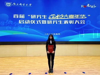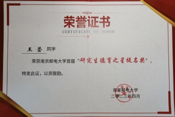 王莹同学荣获校首届研究生“德育之星”提名奖