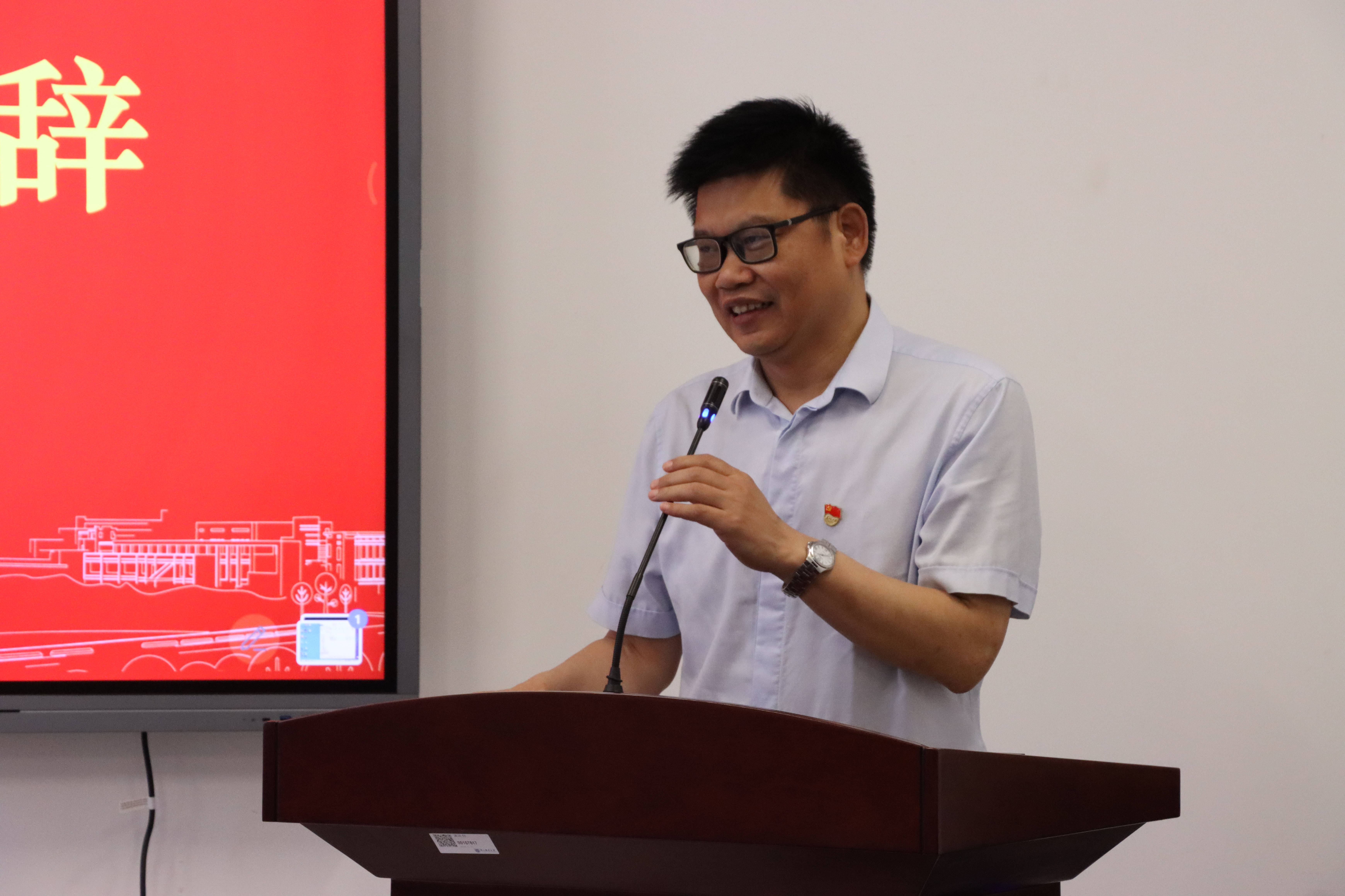 首先,马克思主义公司党委书记沈召前致开场词。沈书记强调通过微党课这一形式,用“讲起来”的方式提升同学们的理论宣讲能力,并对参赛同学提出了三个方面的嘱托:即要了解和掌握学习贯彻习近平新时代中国特色社会主义思想主题教育活动的重要内容,以实际行动参与到“师生共讲二十大”的实践之中;要坚定学习马克思主义理论的信念,踏实学好专业理论知识,将理论用之于实现中华民族伟大复兴的伟大实践之中;作为马院员工,要自觉做到在马懂马,在马言马,在马爱马,在比赛过程中提升能力,历练本领。