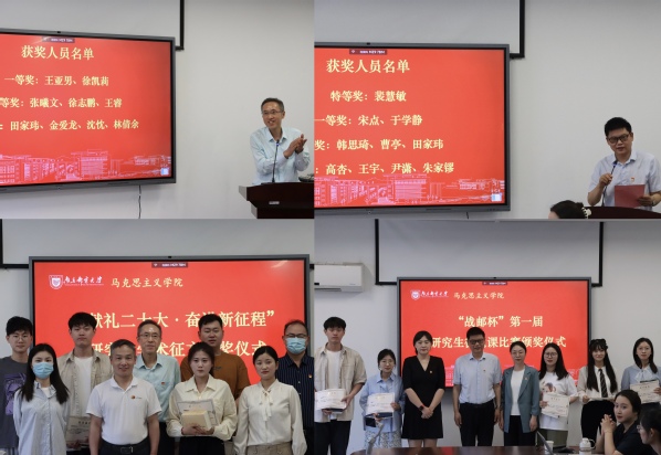 在比赛正式开始之前,颁奖嘉宾先后宣读“献礼二十大·奋进新征程”研究生学术征文活动及第一届研究生“战邮杯”微党课比赛获奖员工名单,为获奖员工颁发证书及奖品,以鼓励其成为“坐下来能写、站起来能说”的优秀人才。