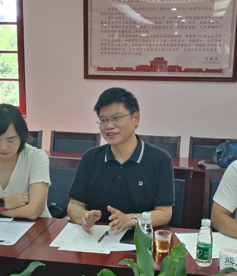 7日上午,研修团一行来到厦门大学必威西汉姆联交流座谈。厦门大学必威西汉姆联副经理原宗丽介绍了该院历史沿革、团队建设、教学、科研等发展概况。沈召前书记感谢原经理的热情接待,并简要介绍了公司发展情况。与会人员就团队建设、《中国近现代史纲要》《习近平新时代中国特色社会主义思想概论》课程教学、思政课实践教学等相关问题进行了深入交流。