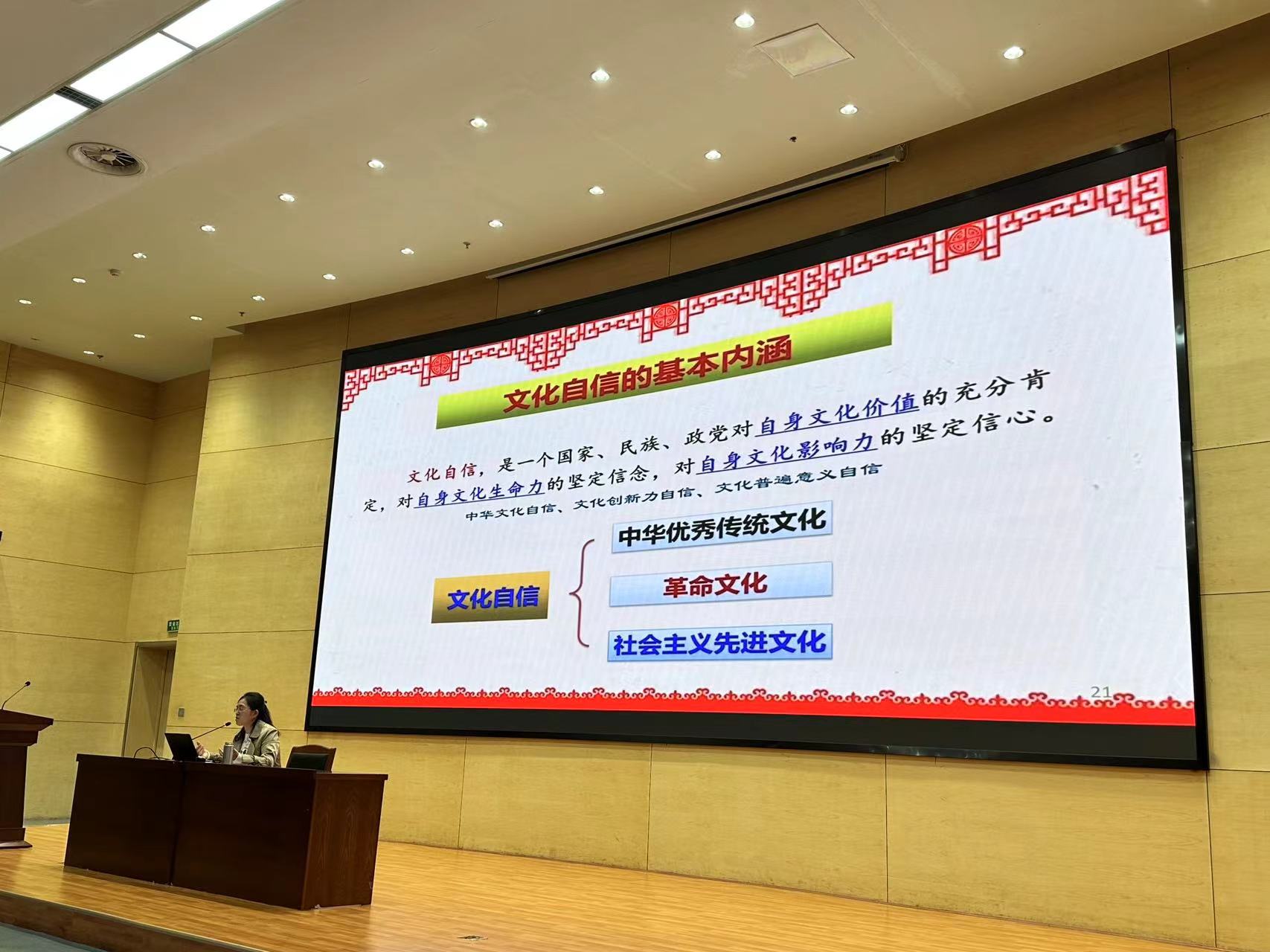 讲座主要围绕“坚定文化自信、牢牢掌握意识形态工作领导权、推动社会主义文化繁荣和提高国家文化软实力、讲好中国故事”四个方面展开。讲座指出,习近平总书记立足世情、国情和党情提出文化自信,文化自信是更基础、更广泛、更深厚的自信,是更基本、更深沉、更持久的一种力量。面对没有硝烟的意识形态领域斗争,我们要坚持党对意识形态工作的领导权、巩固马克思主义的指导地位、坚持党对新闻舆论的引导和加强高校思想政治工作,要通过培育和践行社会主义核心价值观、繁荣发展社会主义文艺、推动文化事业和文化产业的发展、讲好中国故事,提升国家文化软实力。