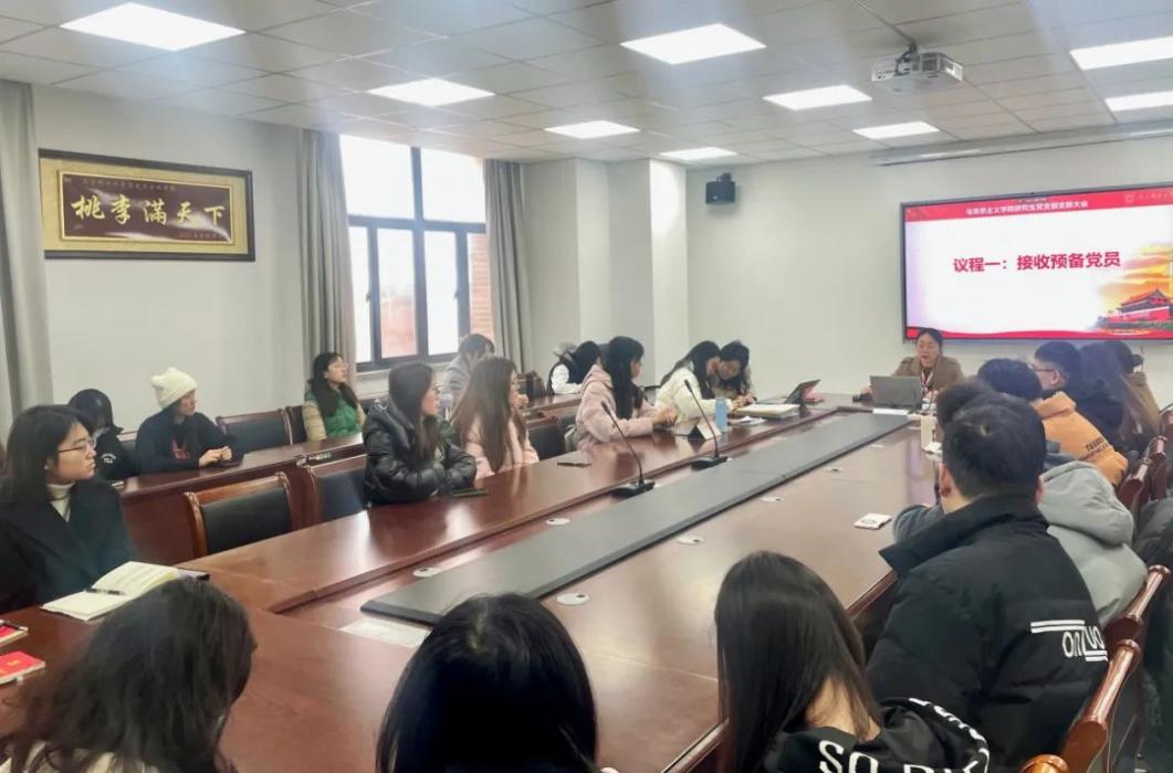 研究生党支部召开支部大会暨主题党课,支部大会讨论了接收预备党员及预备党员转正相关事宜,研究生党支部书记黄洁老师主持会议并讲授“如何开展三会一课”主题党课,支部全体党员参加会议。