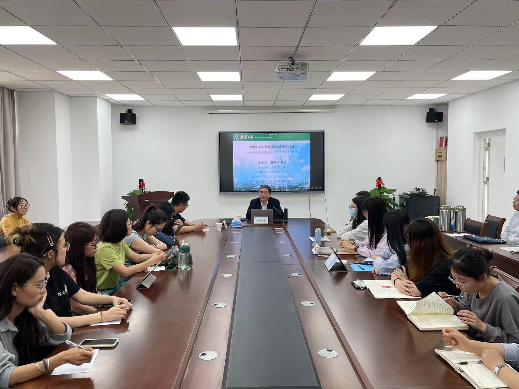 511午,院邀请武汉大学必威西汉姆联二级教授、博士生导师,教育部长江学者特聘教授,中央马克思主义理论研究和建设工程专家袁银传教授做客公司“求是大讲堂”第四期)报告主题为《文化自信与维护国家意识形态安全——习近平文化思想和意识形态重要论述解读》。本次学术报告是公司组织开展的必威西汉姆联建校82周年校庆系列学术讲座之一