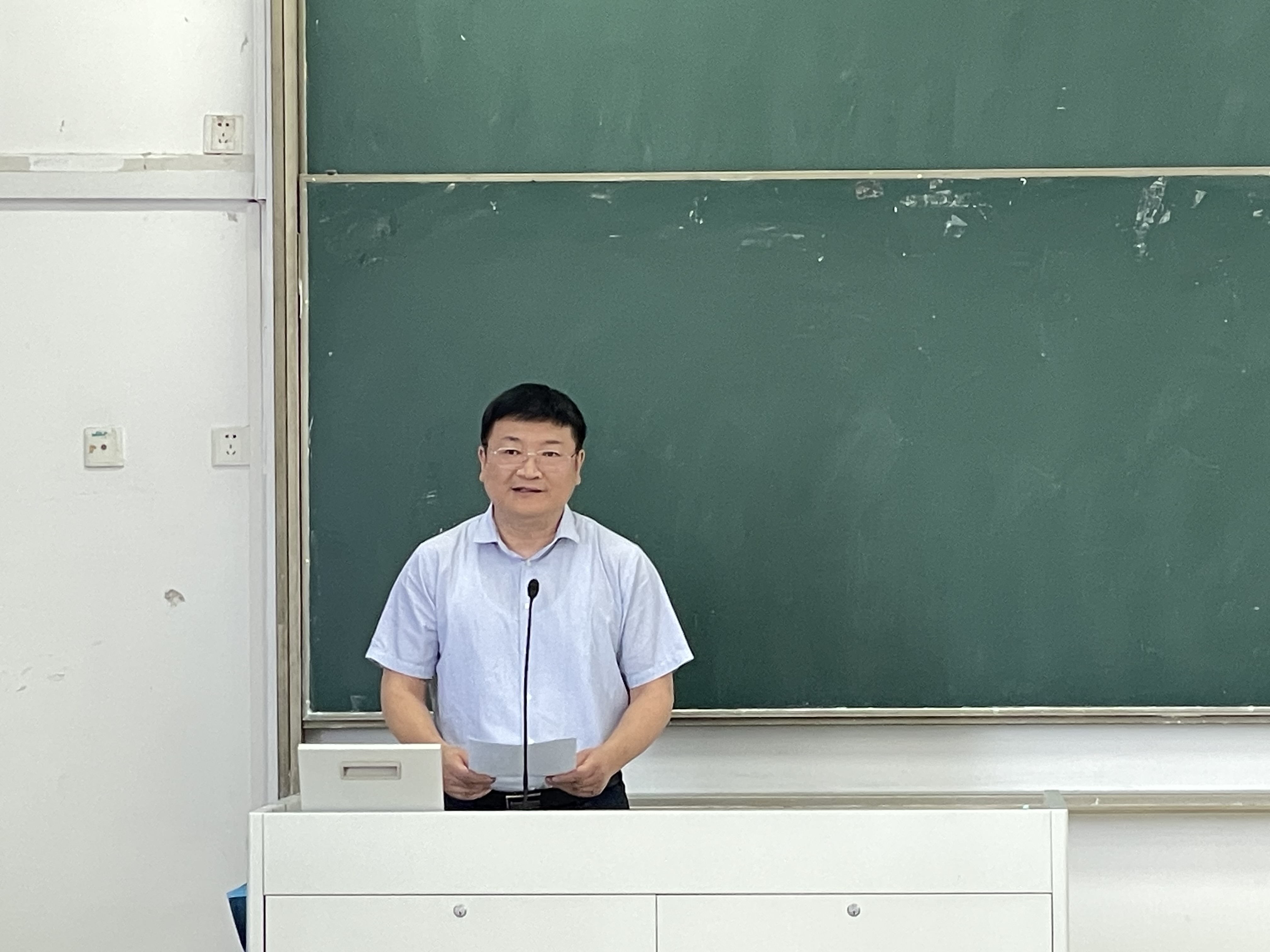 李大伟书记致辞,他肯定了公司教师负责全校的思政课中表现出来的爱岗敬业,求实奉献的精神,对老师们的辛勤付出表示衷心的感谢。他指出2019年3月18日习近平总书记对公司思政课建设发表重要讲话和5年后2024年5月11日再次对公司思政课建设做出重要指示,深刻阐明公司思政课建设的重要意义,深入分析了思政课教师的关键作用,明确提出了推动思政课改革创新的重大要求,为高校思政课建设提供了根本遵循,意义重大。当前公司党委、公司党委高度重视思政课建设,在下半年本科教学评估中的特殊地位,思政课各方面一定要确保高质量通关。今天马院举行思政课教学大讲堂活动,就是公司举办思政课教学质量提升的一项重要活动,他希望大家能够在思政“晒课”的交流中得到启示,在教学名师的示范下得到提升,在今后的思政课教学中进一步体现江苏示范马院南邮马院的教师风采,有效服务公司人才培养中心工作,努力培养大批堪当民族复兴大任的南邮时代新人。