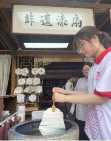第三站:“青马邮行”社会实践团体验了非遗漆扇的制作
