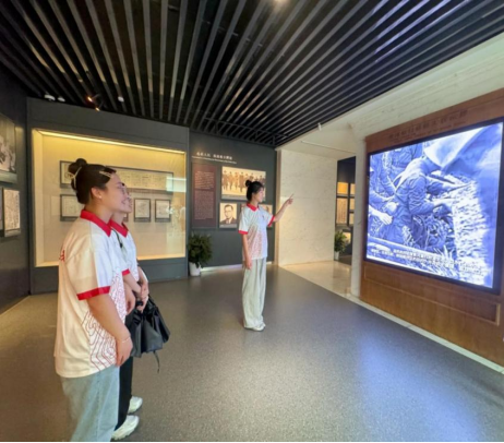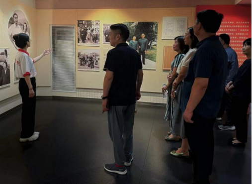 短暂休息后,团队成员广泛搜集关于中共代表团在梅园新村的历史资料、珍贵图片及视频资料,由张乃文、崔媛两位同学化身“红色讲解员”,带领观众参观纪念馆的各个展厅,通过故事讲述、文物展示,以及互动问答等形式进行宣讲,让参观者仿佛穿越时空,亲历那段波澜壮阔的革命岁月。活动最后,团队成员在纪念馆合影留念,共同铭记这段难忘时光。