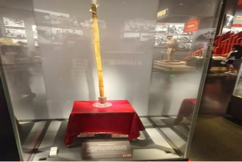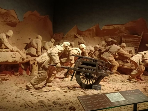 在淮海战役纪念馆支前厅内,陈列着一根长度为1.2米的小竹竿,其表面刻满了鲁苏皖三省88个地方的名字,记录了长达3000公里的人民支前路线图。面对这根承载着深厚历史意义的竹竿,“邮行淮海”团队成员们深受触动,深入了解了支前模范唐和恩的英勇事迹与不朽贡献。回顾淮海战役壮阔的历史,543万支前民工推着88万多辆大小推车,累计输送粮食多达4.3亿斤,这一壮举为战役的顺利进行提供了坚实的后勤保障。在深入参观支前厅的过程中,团队成员们对陈毅元帅那句“淮海战役的胜利,是人民群众用小车推出来的” 的话有了更加直观与深刻的理解,深刻体会到人民群众在战争中的伟大力量与无私奉献。