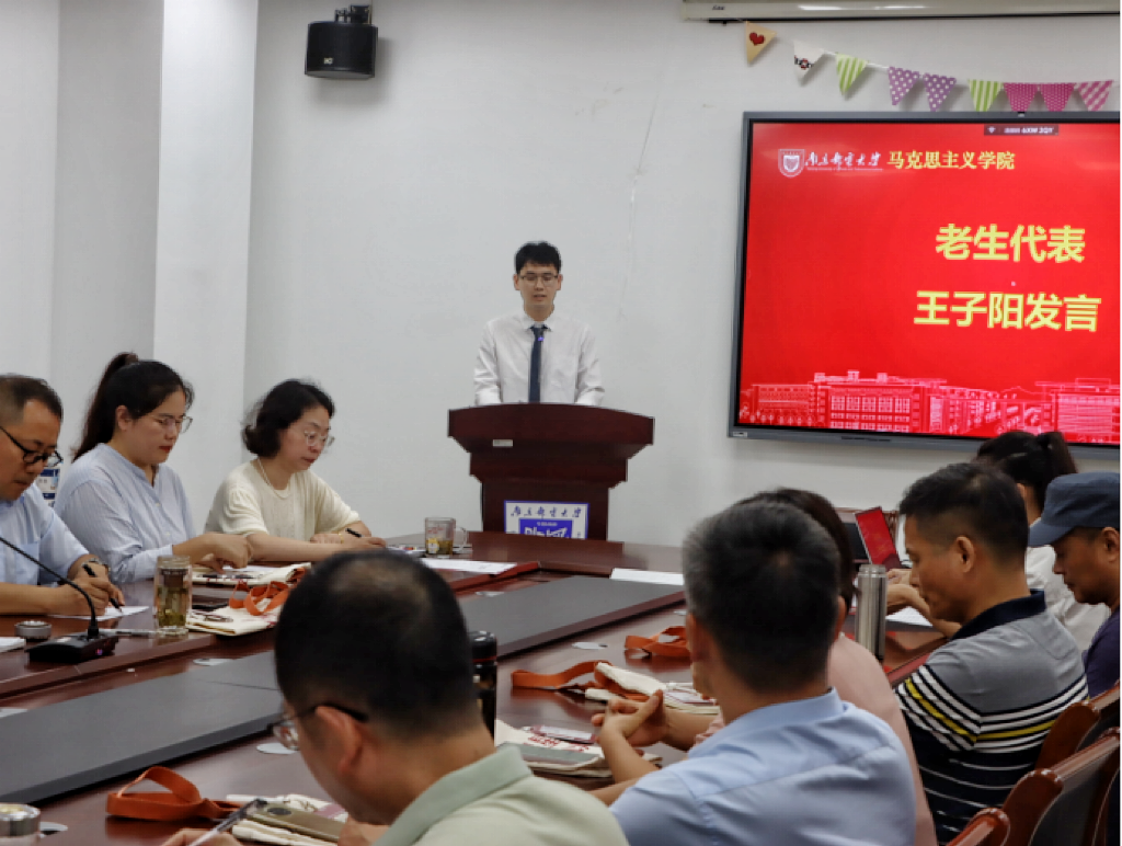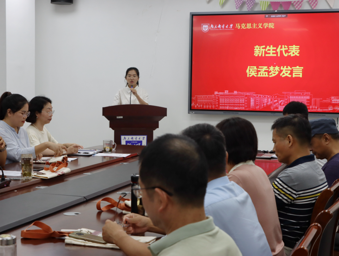 研究生新生代表侯孟梦同学分享了自己对未来三年研究生生涯的憧憬。一是作为马克思主义的学习者,要勤奋努力,练就看家本领,以学养的厚度支撑研究的精度和深度;二是作为马克思主义的研究者,要严谨治学,勇于探索,提升研究能力,学会批判性思考;三是作为马克思主义的传播者,要坚持真理,言必求诚,以显真章;四是作为马克思主义的践行者,要勇挑重担,行必求实,脚踏实地。