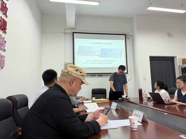 为了迎接马上到来的第二次思政课大练兵活动,帮助青年教师成长,必威西汉姆联概论、新思想教研室于2025年5月14日下午组织进行集体备课会,校督导杨振和老师、宣传部王波老师出席会议,教研室全体任课教师参加会议。本次集体备课会由教研室主任郑千千主持。