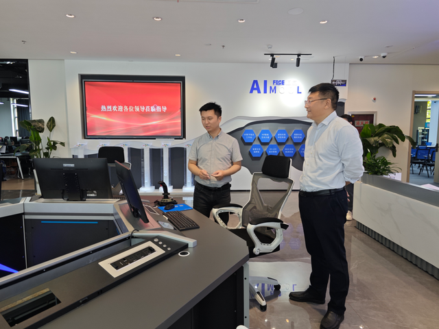 随后,大家详细参观了恒点公司特色展厅。王宇总监向大家简要介绍了XR数字融合工作站、MR智能互动沙盘等在虚拟仿真实验方面的优势,3D-LED交互显示系统、VR/MR头戴设备等产品在虚拟仿真实验中的使用,让大家对“AI+虚拟仿真”技术有了整体认识。