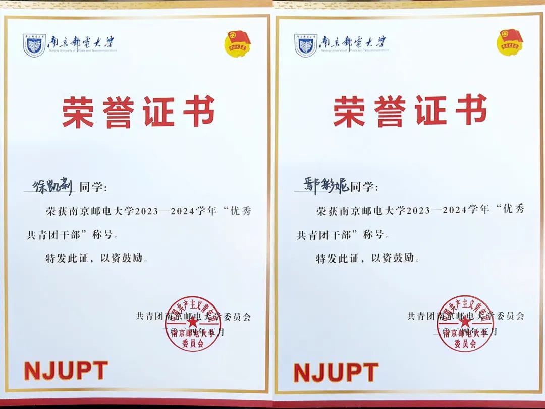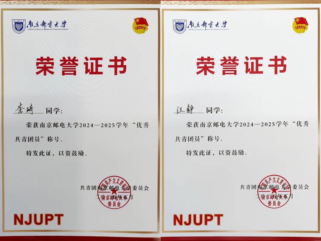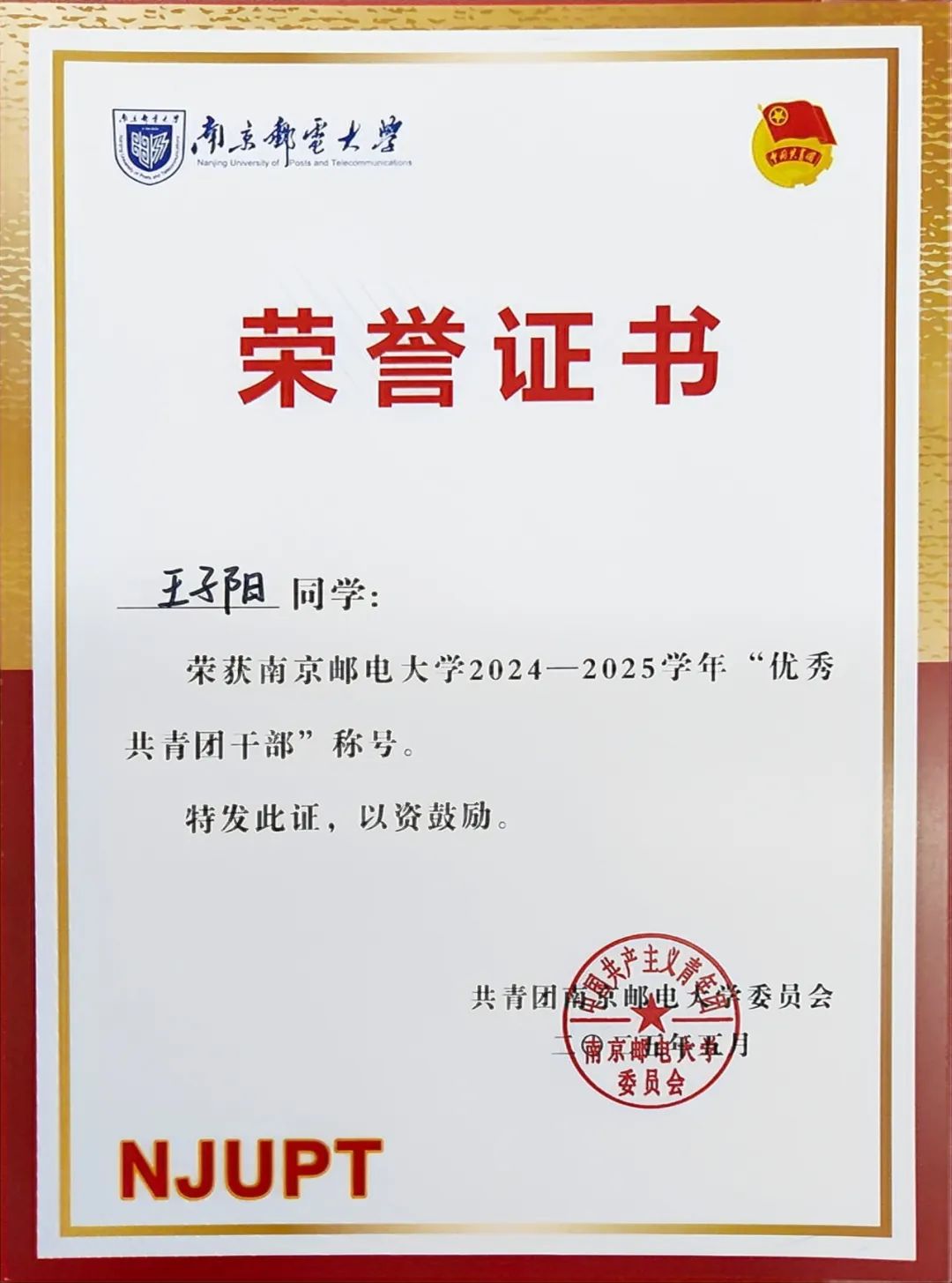 鄢彩妮、徐凯莉、王子阳同学荣获2024-2025学年“优秀共青团干部”称号