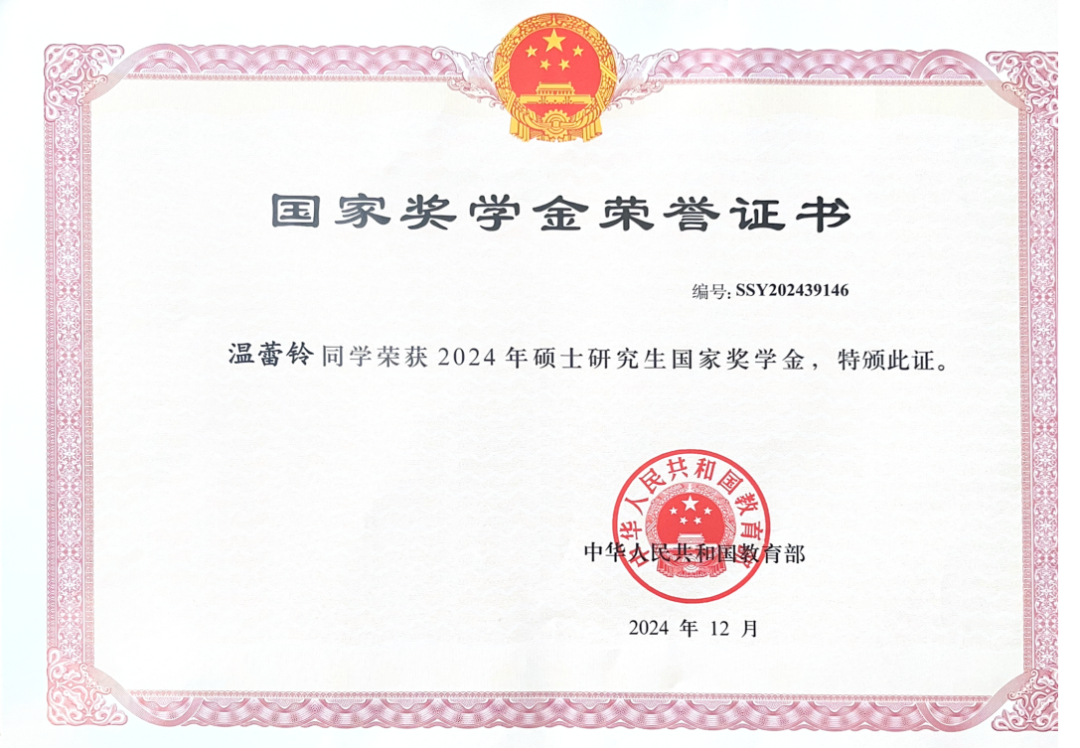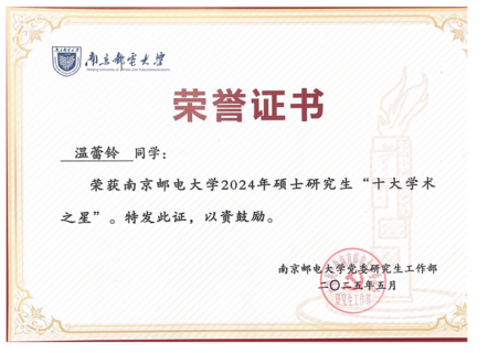温蕾铃同学获评研究生国家奖学金,研究生“十大学术之星”