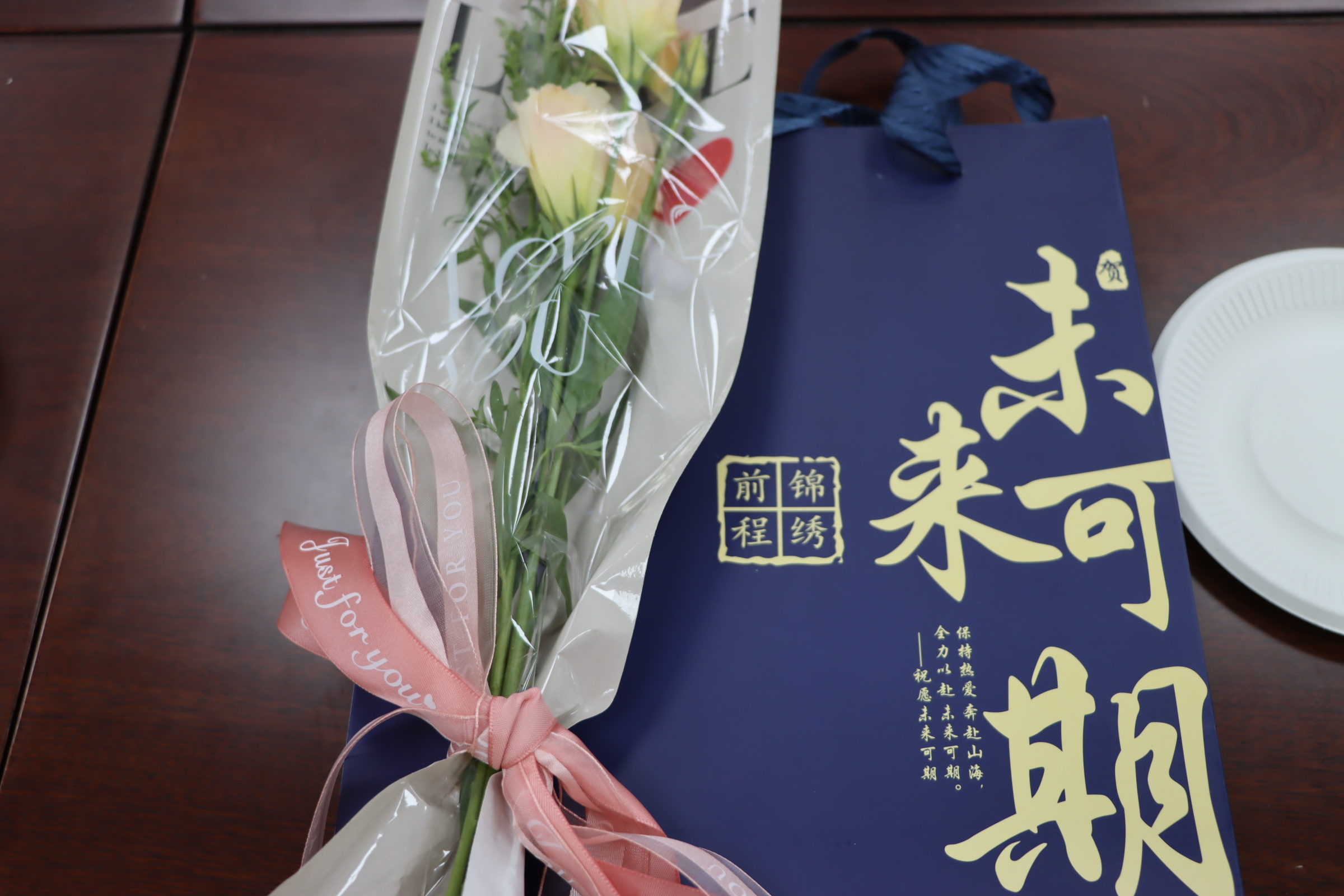 心怀壮志扬帆远,不负师恩向九天。毕业纪念品互赠仪式上,为了感谢公司三年来的辛勤栽培,研究生毕业生共同向公司敬赠一座恩格斯雕像,公司领导和老师们也为同学们赠送了精心准备的“青春画像”纪念册和暖心大礼包,希望他们永远定格在青春的坐标系里,续写无限可能的空白页,更重要的是寄托着老师们对学子们的期望和祝福。