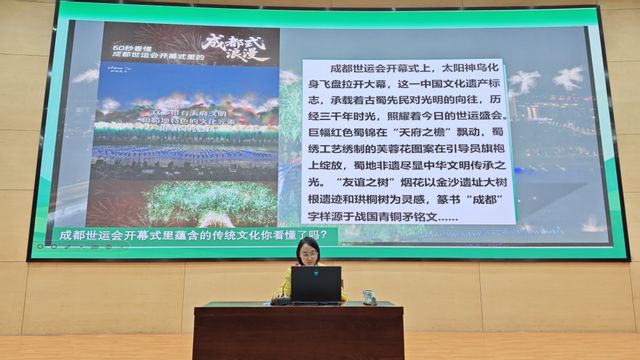 讲座围绕“中华传统文化‘活’起来了”“为什么会出现‘传统文化热’”“我们该如何对待中华优秀传统文化”三个方面展开。讲座指出,中华优秀传统文化是中华民族的精神命脉,是涵养社会主义核心价值观的重要源泉,也是我们在世界文化激荡中站稳脚跟的坚实根基;党和国家高度重视中华优秀传统文化的传承发展,使传统文化绽放出新的生机和活力;文化自信是一个国家、一个民族发展中最基本、最深沉、最持久的力量,全民族文化自信的不断增强,为“传统文化热”的持续升温营造了良好的社会环境。陈老师鼓励青年学子,我们要认真系统学习中华优秀传统文化知识,不断提升自身文化素养,持续推进中华优秀传统文化的创造性转化和创新性发展,坚定文化自信,自觉抵御文化虚无主义。